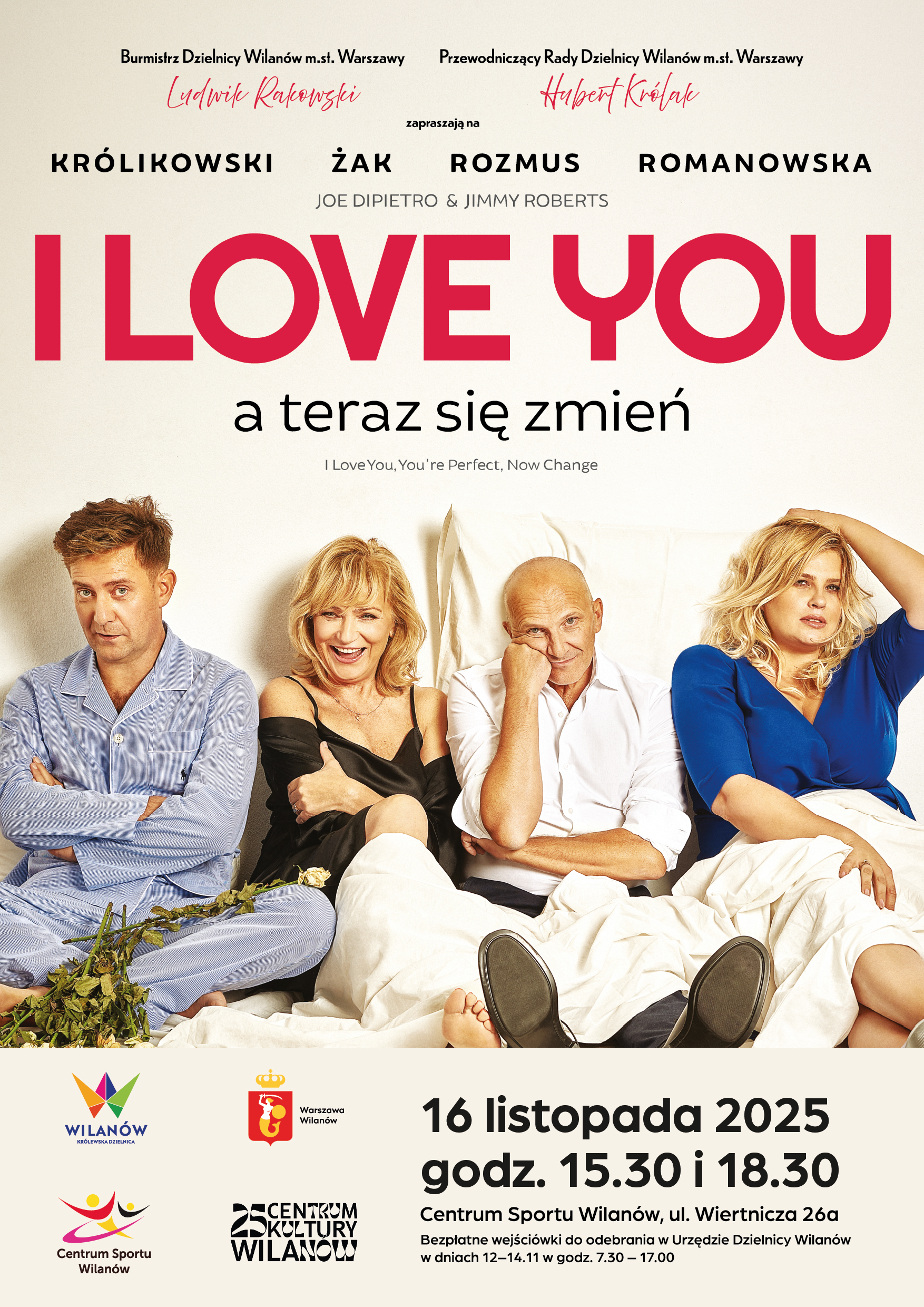 I LOVE YOU to gwiazdorska obsada: Katarzyna Żak, Elżbieta Romanowska, Rafał Królikowski i Robert Rozmus. Aktorom towarzyszą znakomici muzycy.