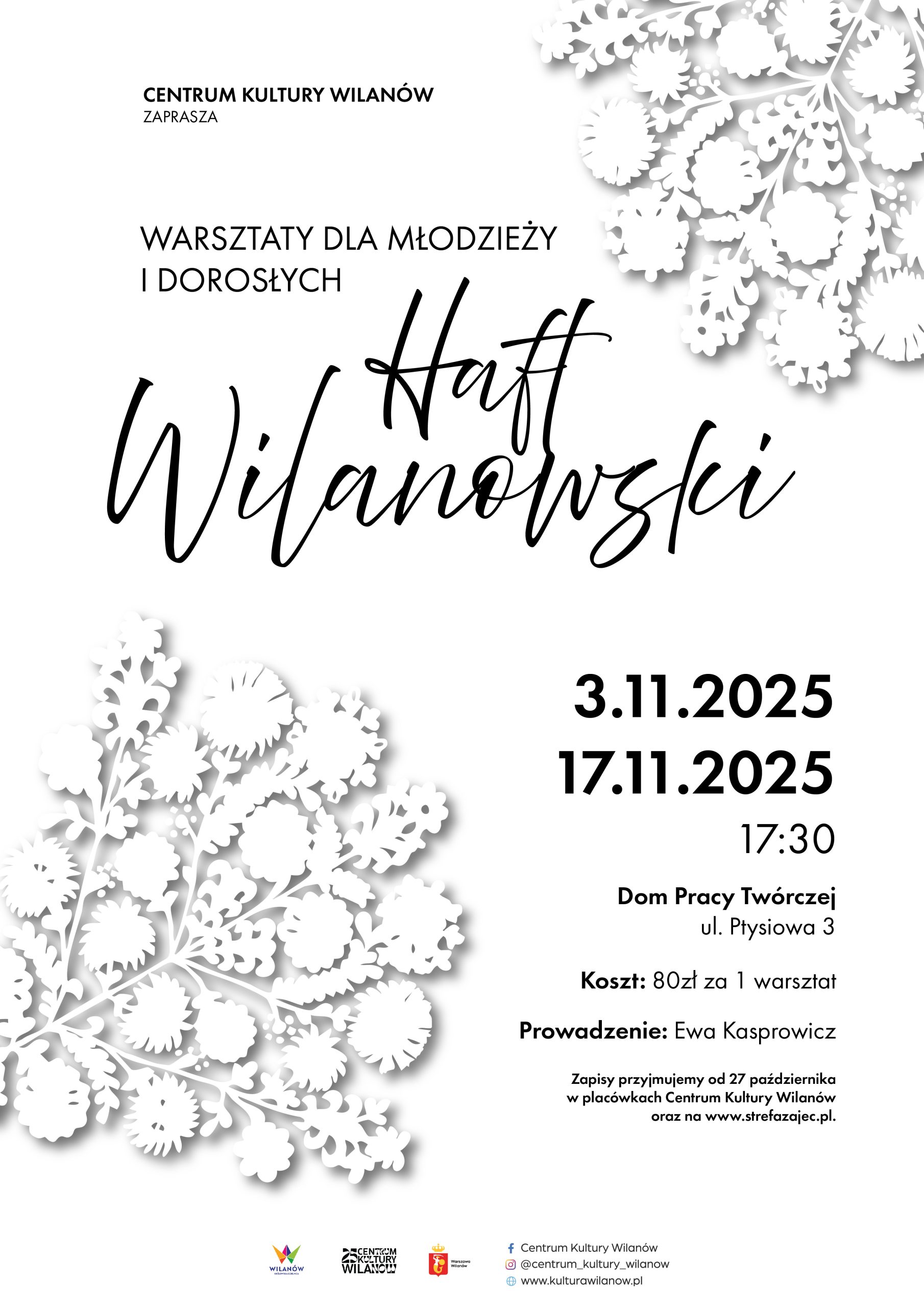 Zapraszamy na wyjątkowe warsztaty poświęcone haftowi wilanowskiemu – unikalnej technice zdobniczej związanej z lokalnym dziedzictwem kulturowym Wilanowa. To doskonała okazja, by w praktyce odkryć niematerialne dziedzictwo regionu, którego sercem jest właśnie Powsin.